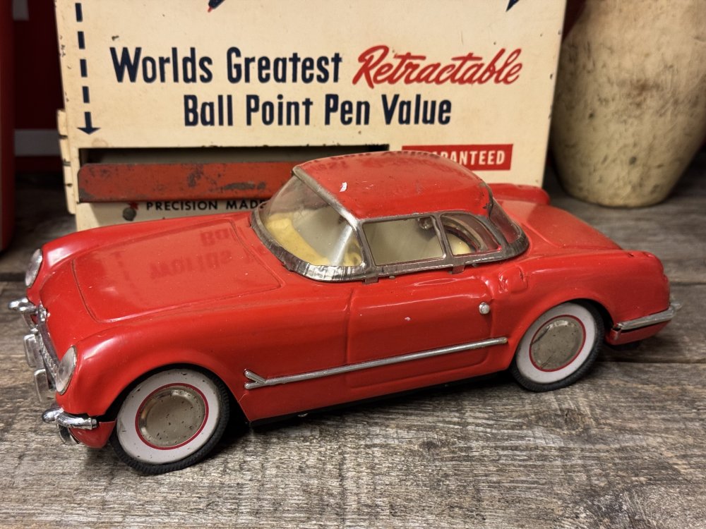 Retro Rød blikbil 25 cm