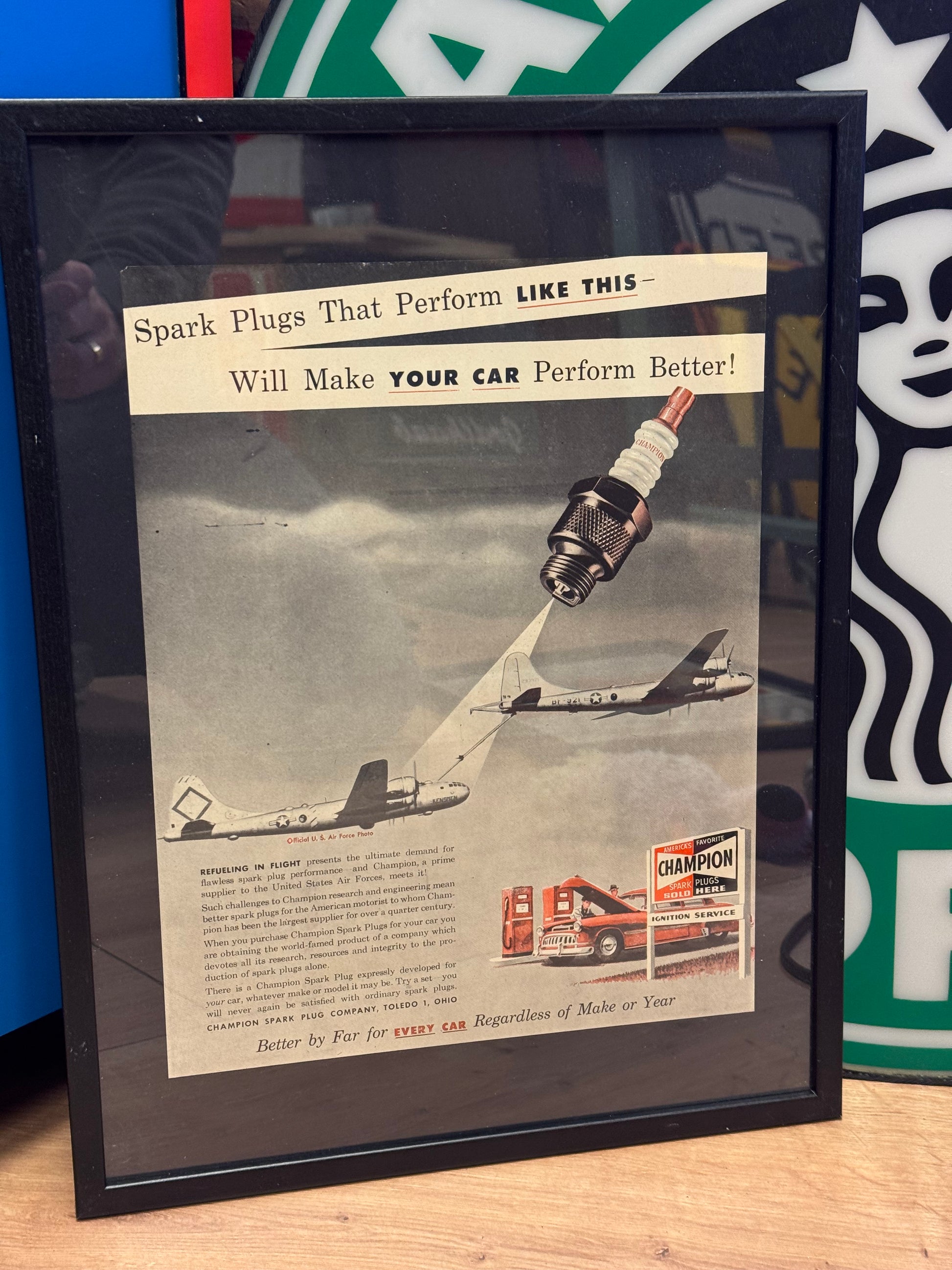 - Annoncen er fra Champion Spark Plug Company i Toledo, Ohio.