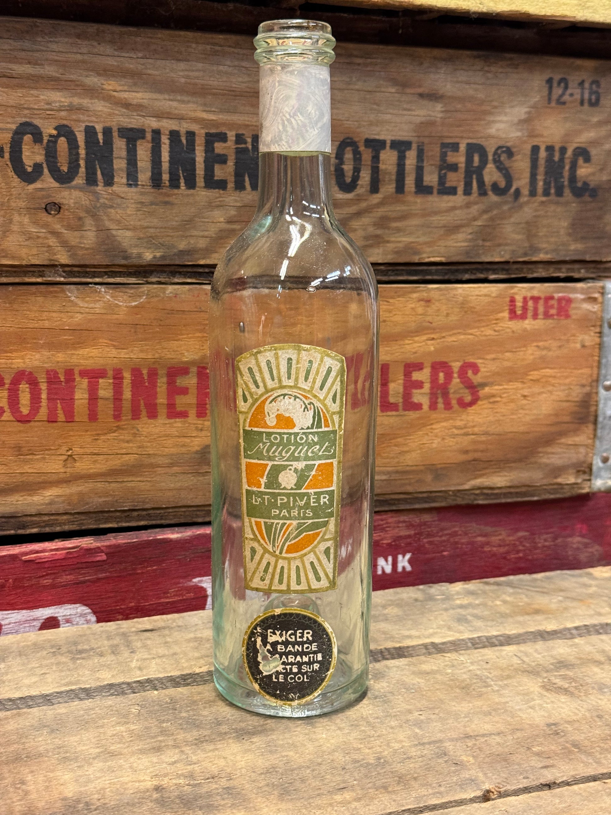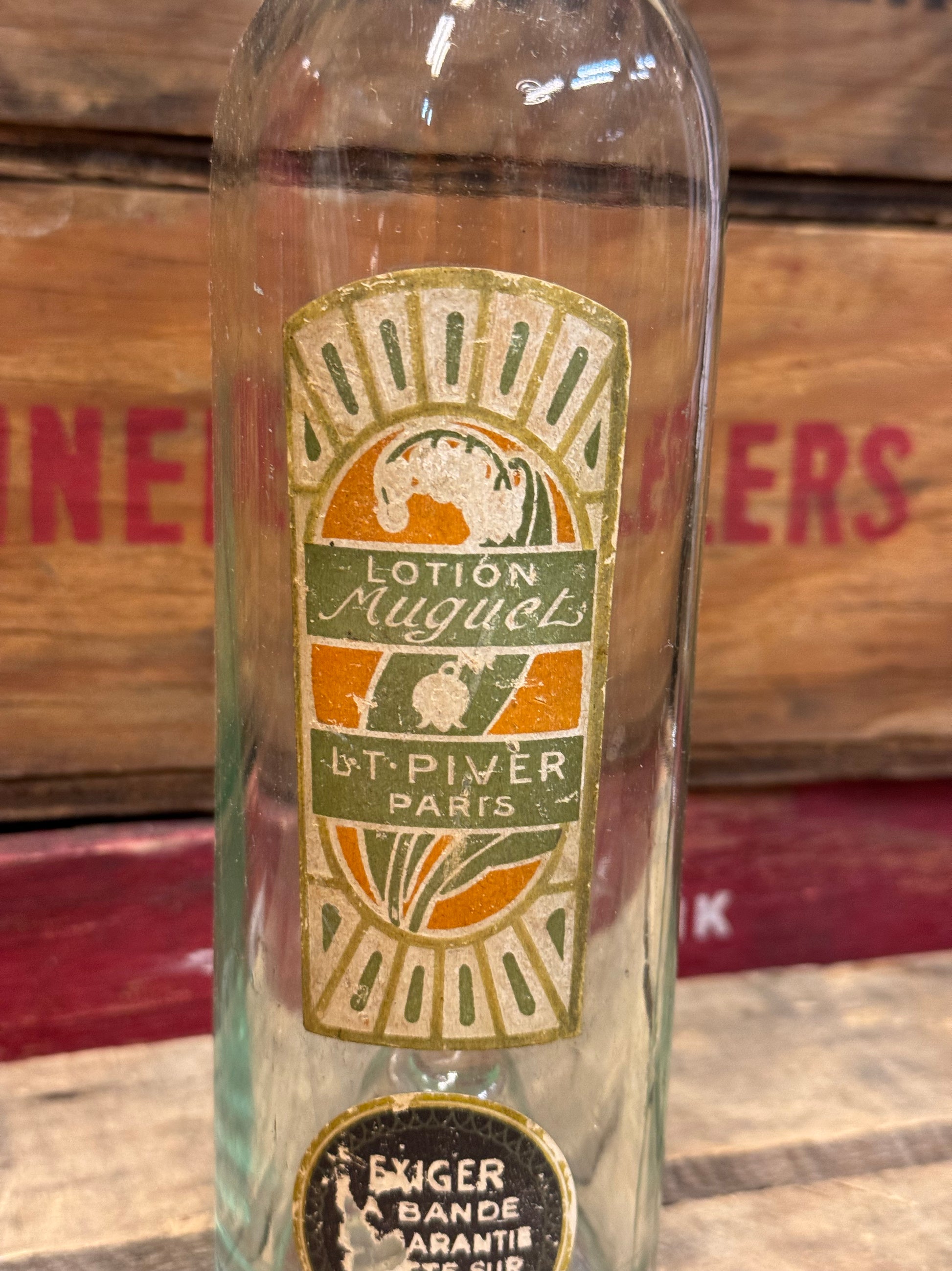 vintage flaske "Lotion Muguet" fra parfumehuset DT Piver Paris. Muguet er det franske ord for liljekonval, en populær duft i parfumeindustrien.