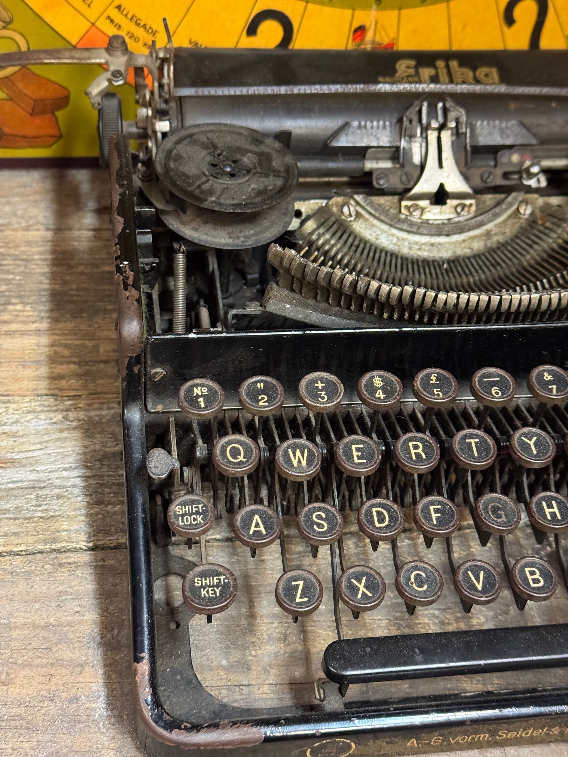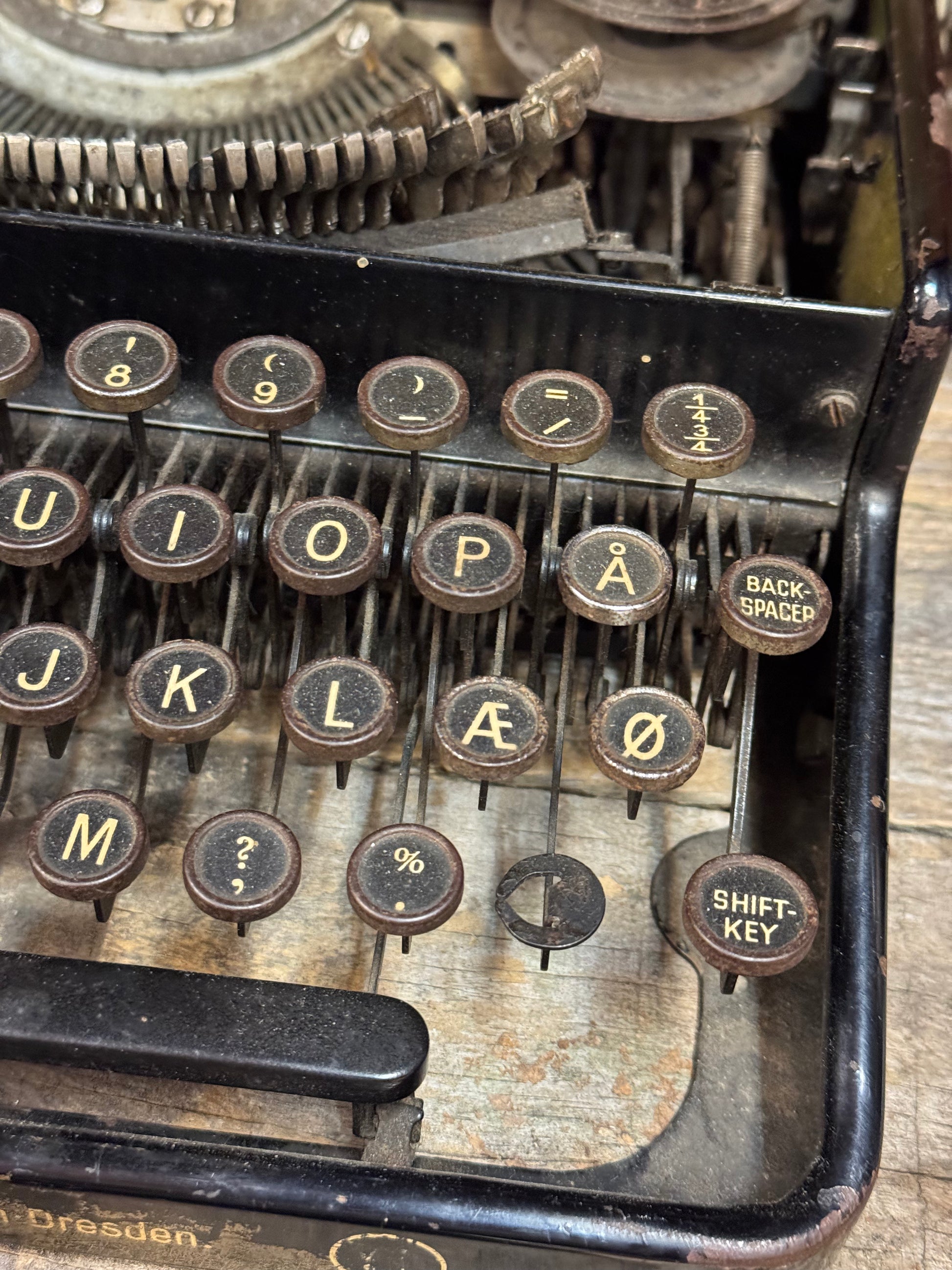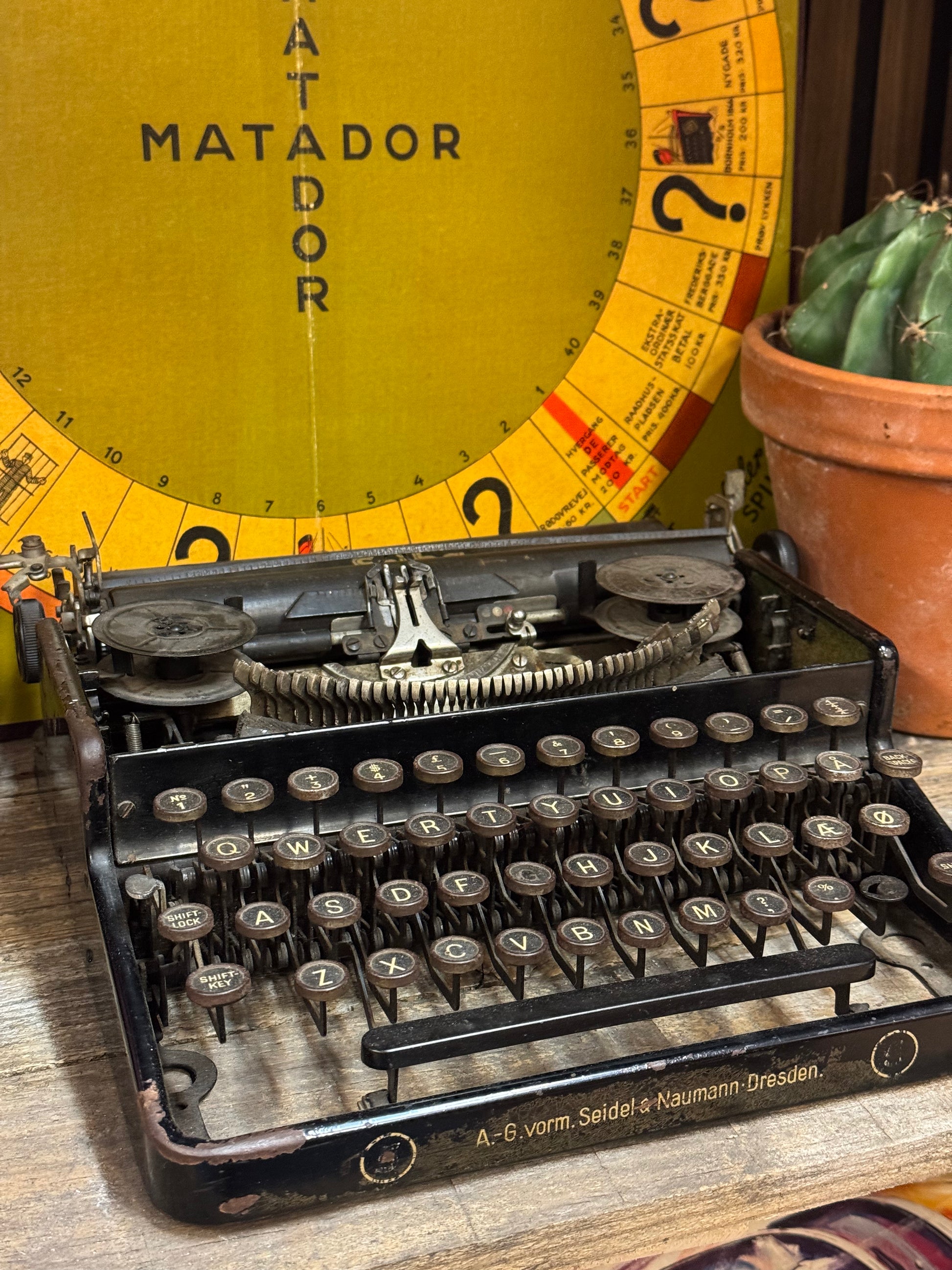 Dette er en antik Seidel & Naumann Erika-skrivemaskine. Virksomheden Seidel & Naumann fra Dresden producerede skrivemaskiner fra 1899 til 1945.