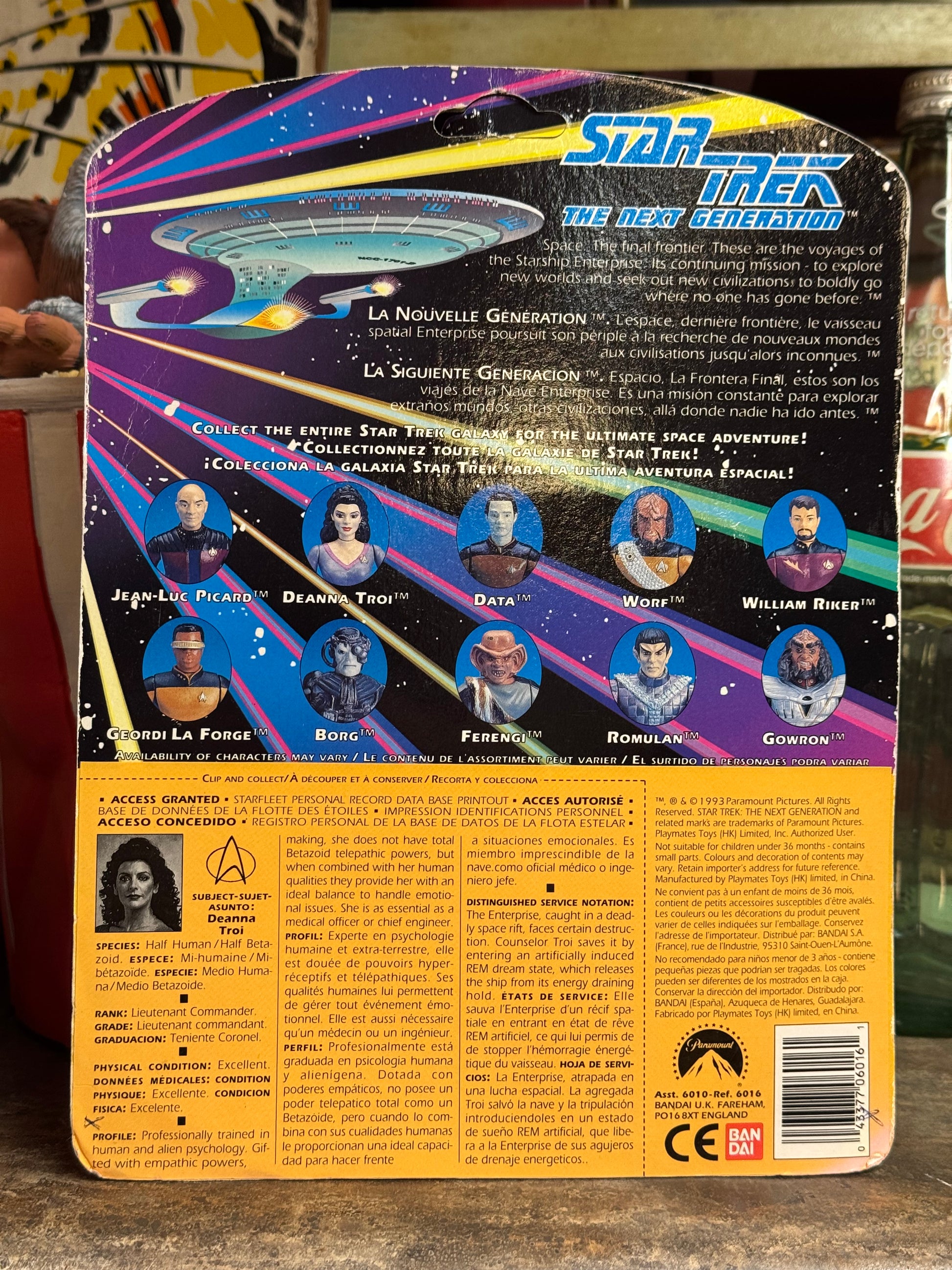 - Karakter: Lieutenant Commander Deanna Troi, rådgiver fra Starfleet-skibet USS Enterprise-D.