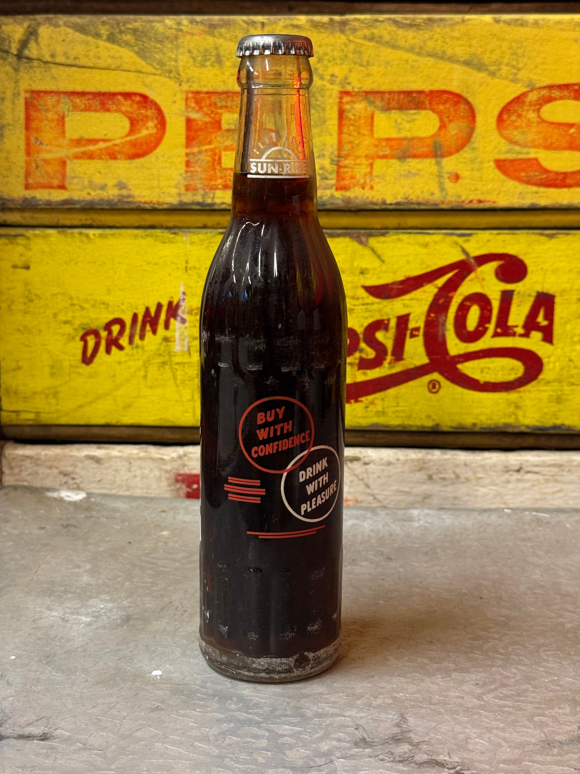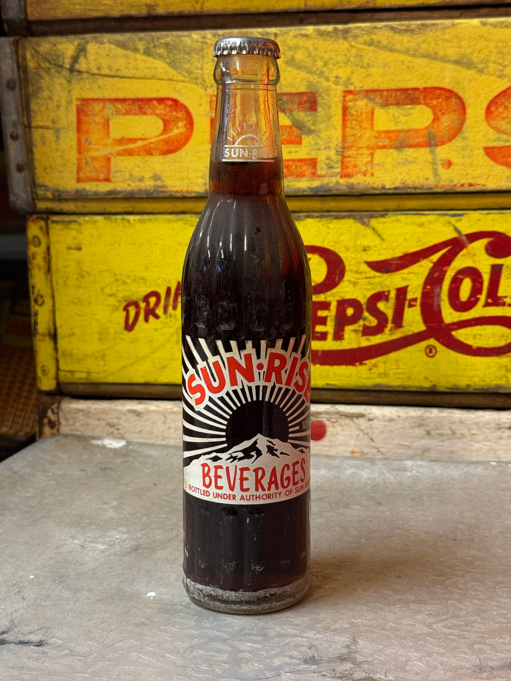 Flasken på billedet er en vintage Sun-Rise Beverages sodavandsflaske.