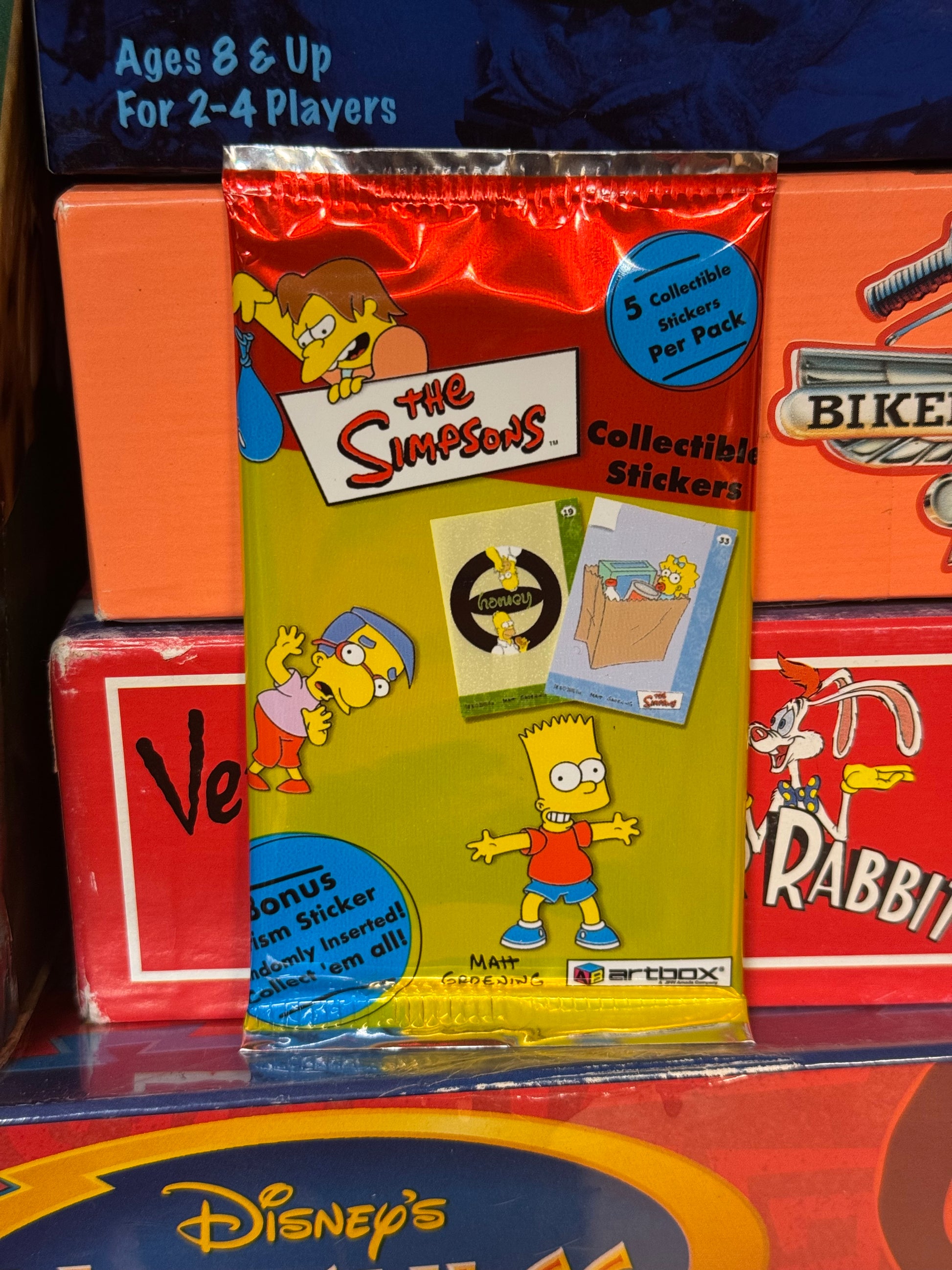 pakke med samleklistermærker fra The Simpsons, produceret af Artbox i år 2000