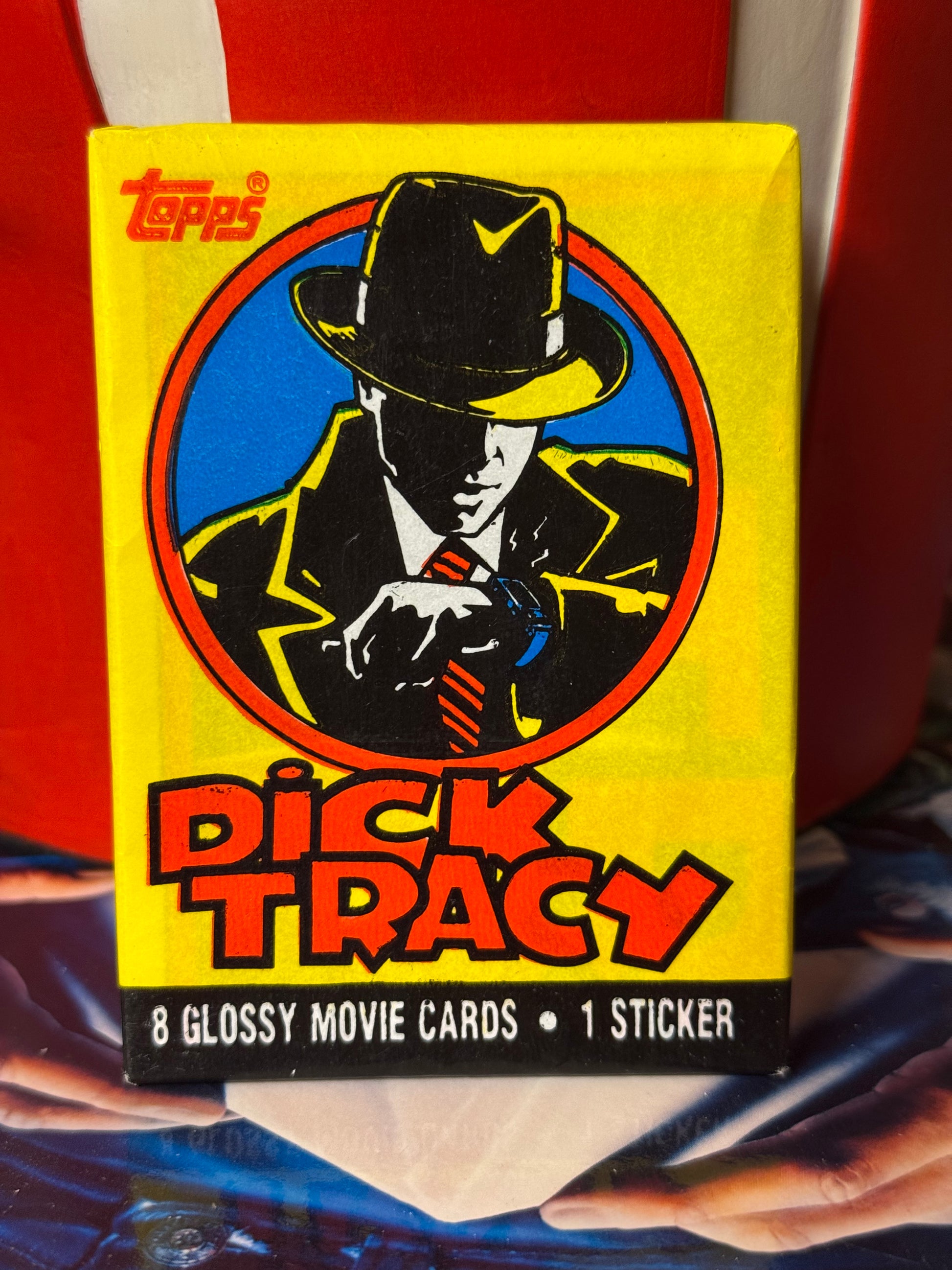 uåbnet pakke med Topps Dick Tracy Movie-samlekort fra 1990.